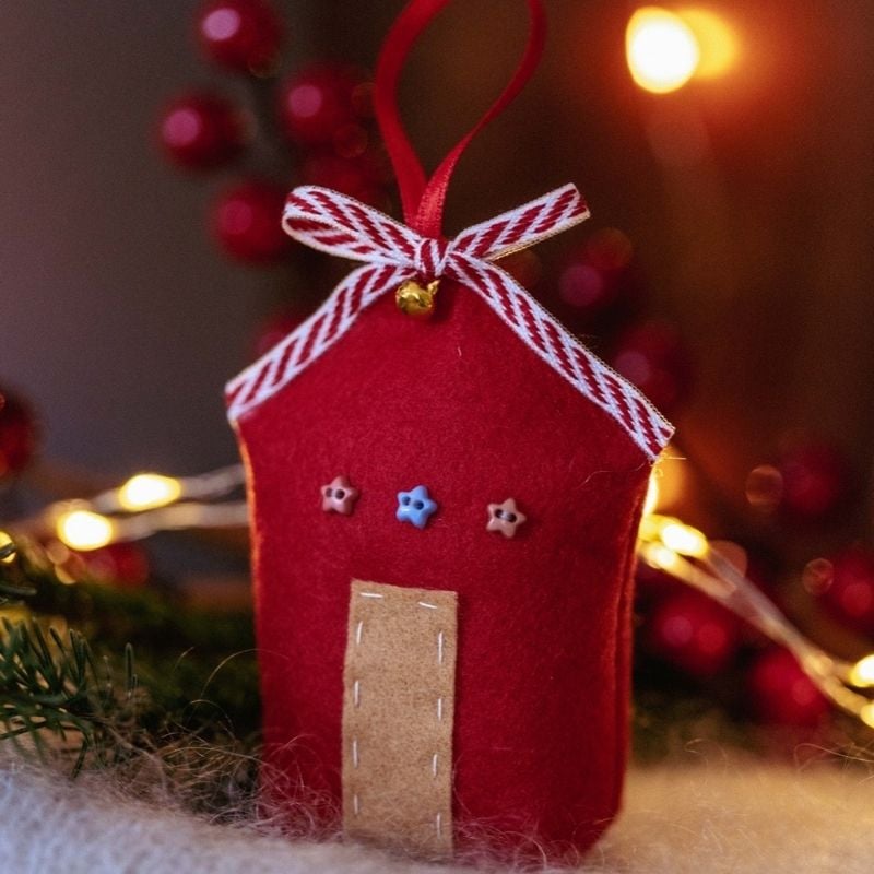 Questa deliziosa decorazione natalizia è realizzata con del pannolenci rosso e i suoi dettagli la rendono davvero un addobbo curato nei minimi particolari.