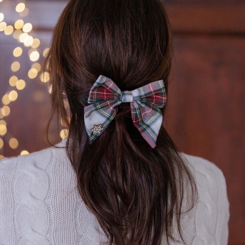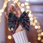 Questo fiocchetto in cotone con fantasia tartan è disponibile in due varianti colori: base chiara e base verde. Questo fiocchetto può diventare sia una bellissima decorazione natalizia sia un elastico per i capelli, ovviamente sarà indispensabile specificare la vostra richiesta. Il piccolo dettaglio in legno all'angolo di una delle due code del fiocchetto, dimostrano cura e ricercatezza per i dettagli, un'idea carina e originale per fare dei semplici regali natalizi.