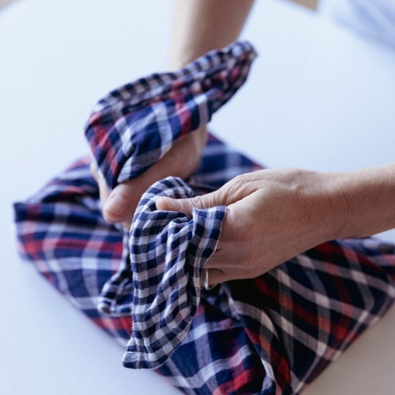 Il furoshiki è un tipico involucro quadrato di stoffa, tradizionalmente utilizzato in Giappone per trasportare vestiti, cibo regali e altri beni.